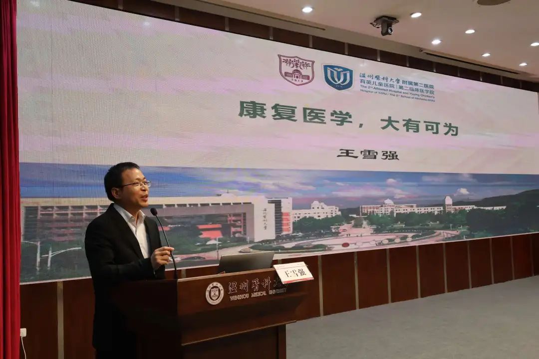 活动初始,王雪强副经理为同学们带来了一场题为“康复医学,大有可为”的精彩讲话。介绍了康复医学当今广阔的发展前景,展示了公司康复专业悠久的办学历程和深厚的文化底蕴,指出了康复专业挑战与机遇并存的现状,最后就康复专业就业去向对同学们提出了诸多建议。王经理以自己的亲身经历鼓励同学们要脚踏实地、志存高远,成为康复医学新一代生力军。