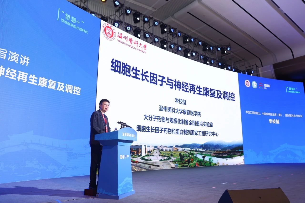 李校堃以《细胞生长因子与神经再生康复及调控》为题,结合自己团队在生长因子领域理论研究和创新实践,着重介绍了在创面康复上的探索和温医大在再生康复医学发展方面服务国家生命大健康创新体系的科教融合、产教融合、医教融合的重点布局,提出要在“医疗、教育、科技、产业”四位一体的体系中发展康复事业。