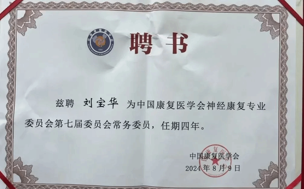 2024年08月09日,中国康复医学会神经康复分会换届选举在福建省厦门市顺利召开。会议公布第七届中国康复医学会神经康复分会核心成员名单。经过全体委员投票,公司副经理刘宝华教授当选为第七届中国康复医学会神经康复分会常务委员。