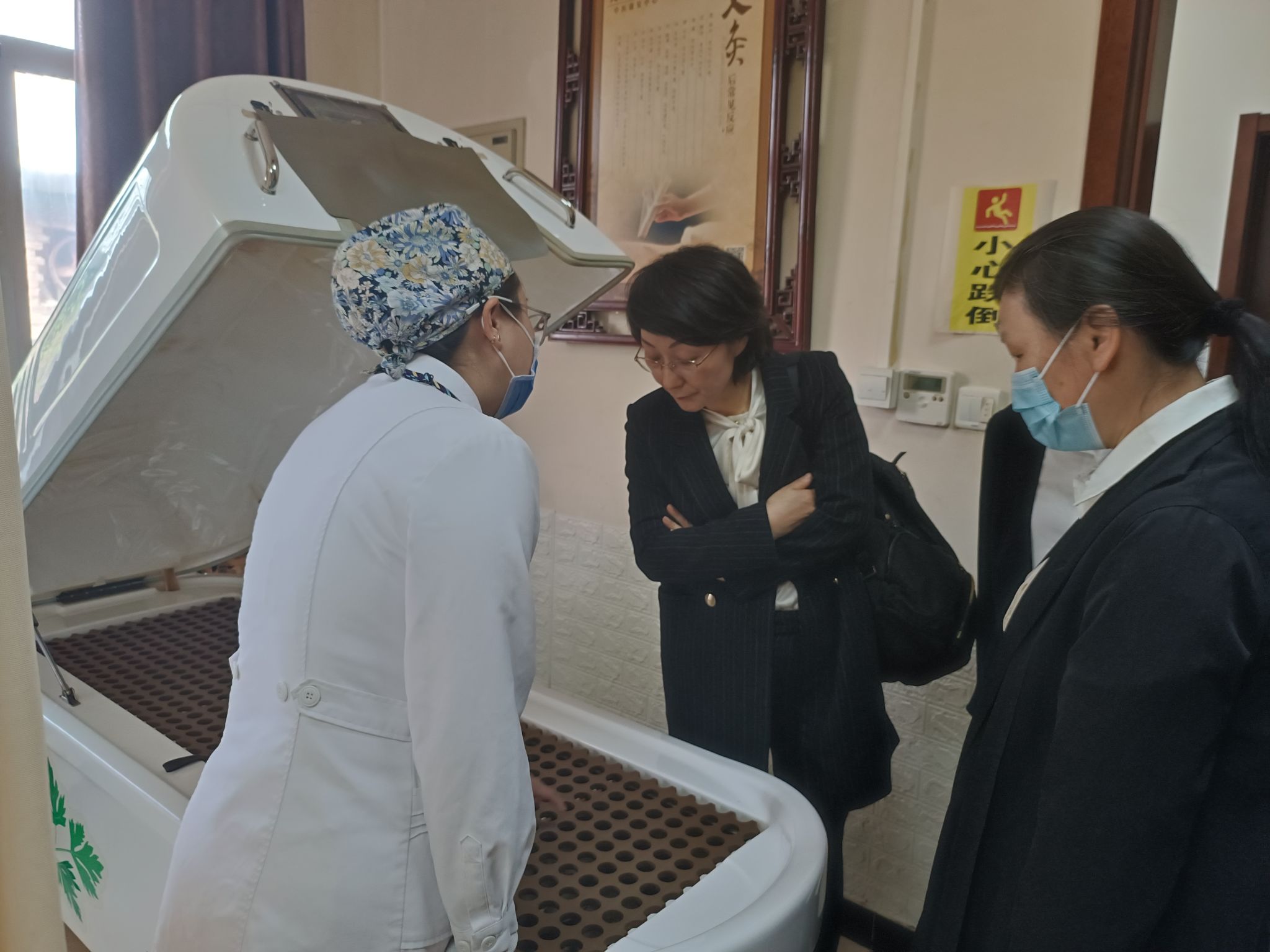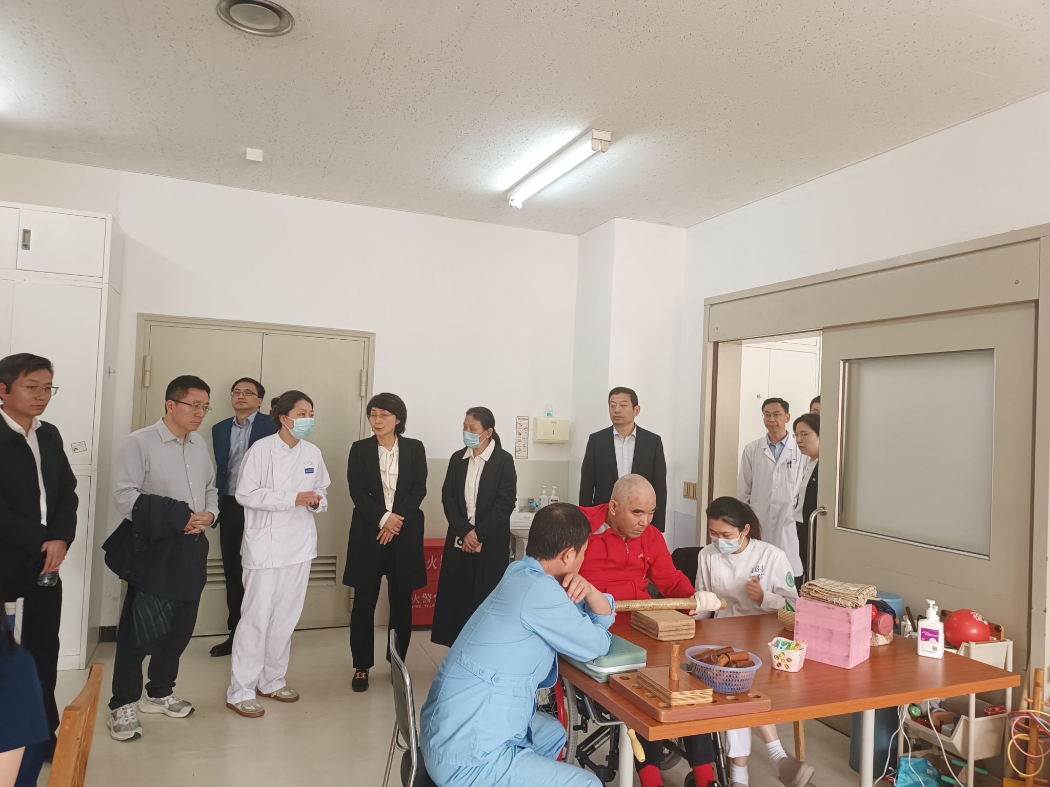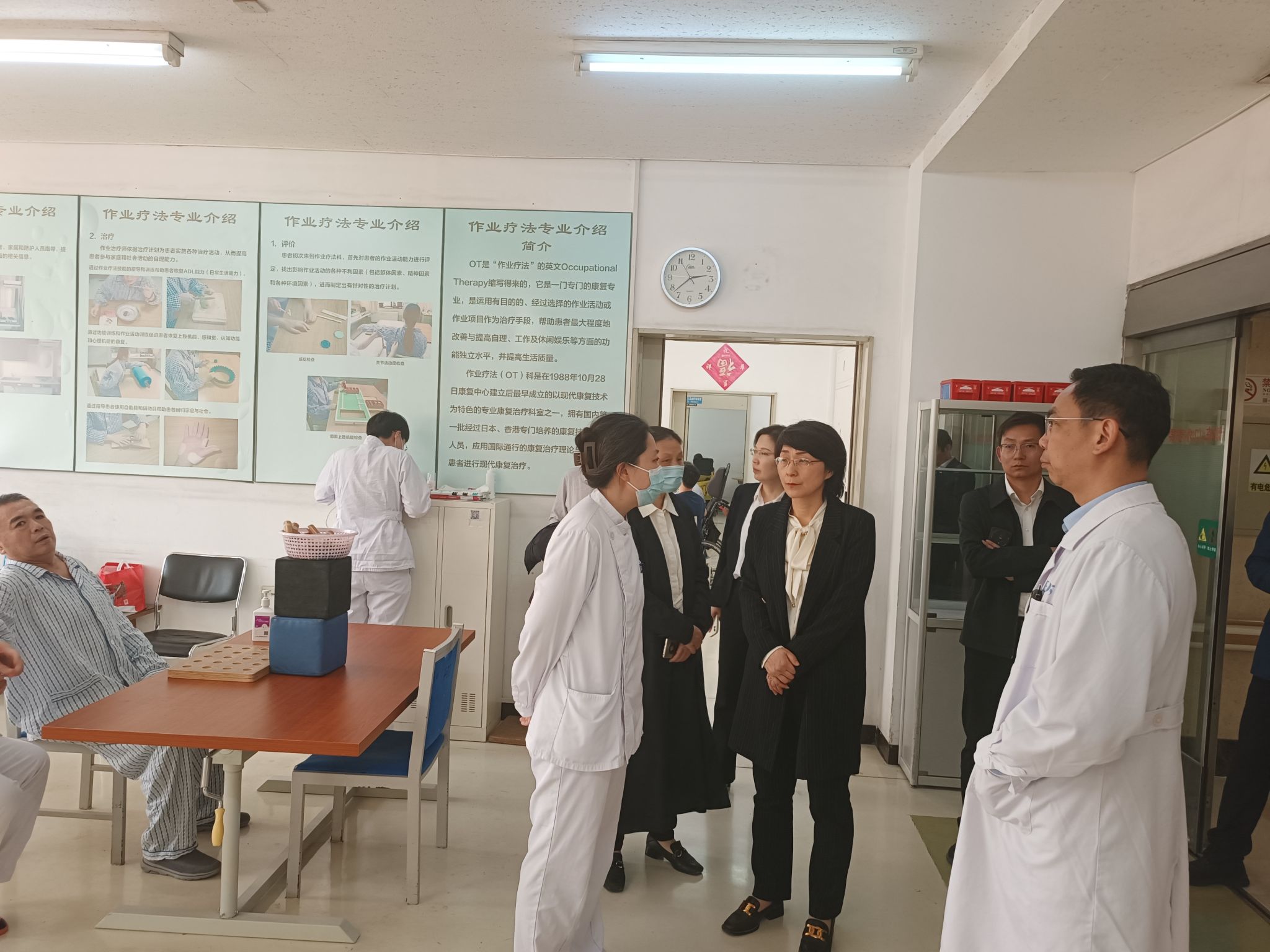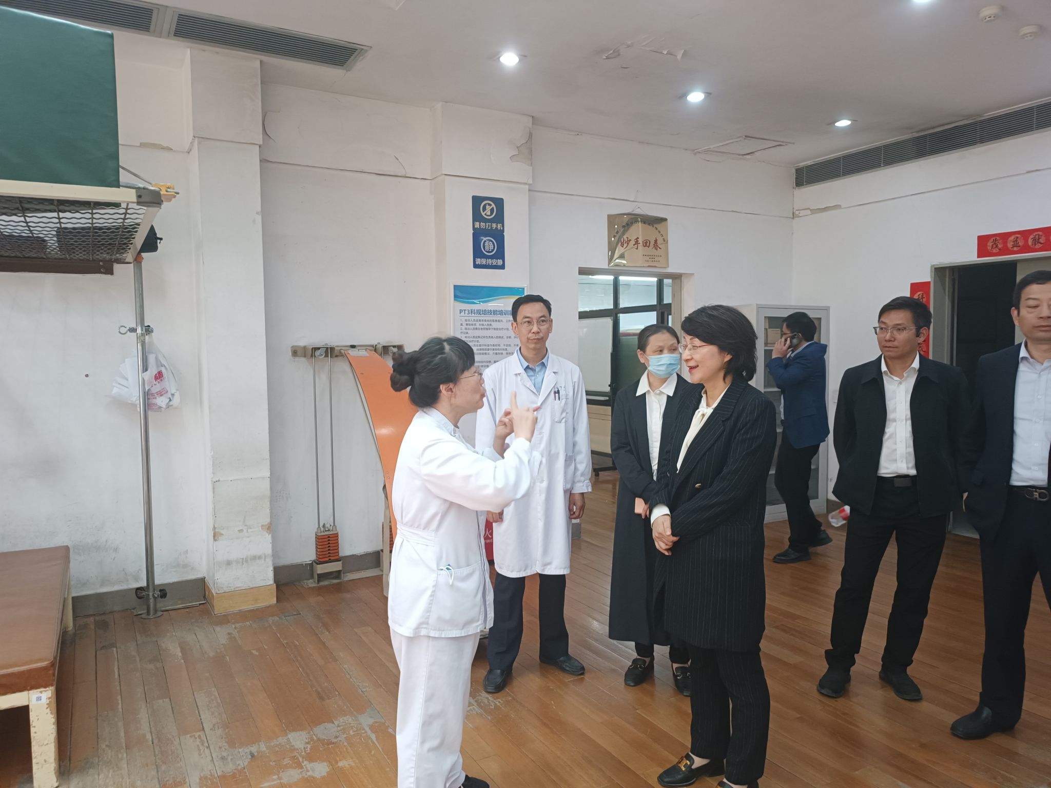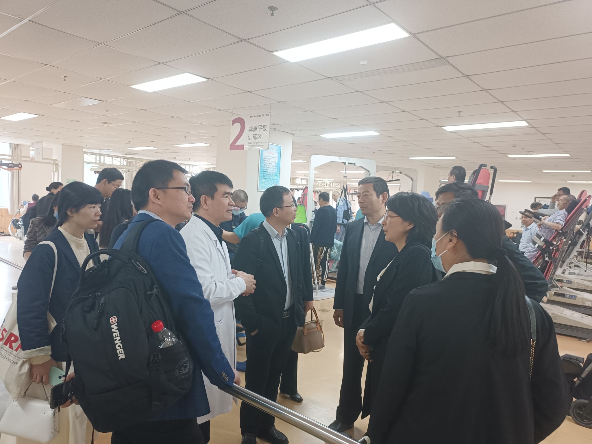 调研组一实地参观了首都医科大学附属北京康复医院门诊、肌骨康复中心心脏康复中心康复诊疗中心以及中医熏蒸等,并与首都医科大学附属北京康复医院副经理公维军以及相关科室负责人就实践教学安排、医院团队建设等进行深入交流。