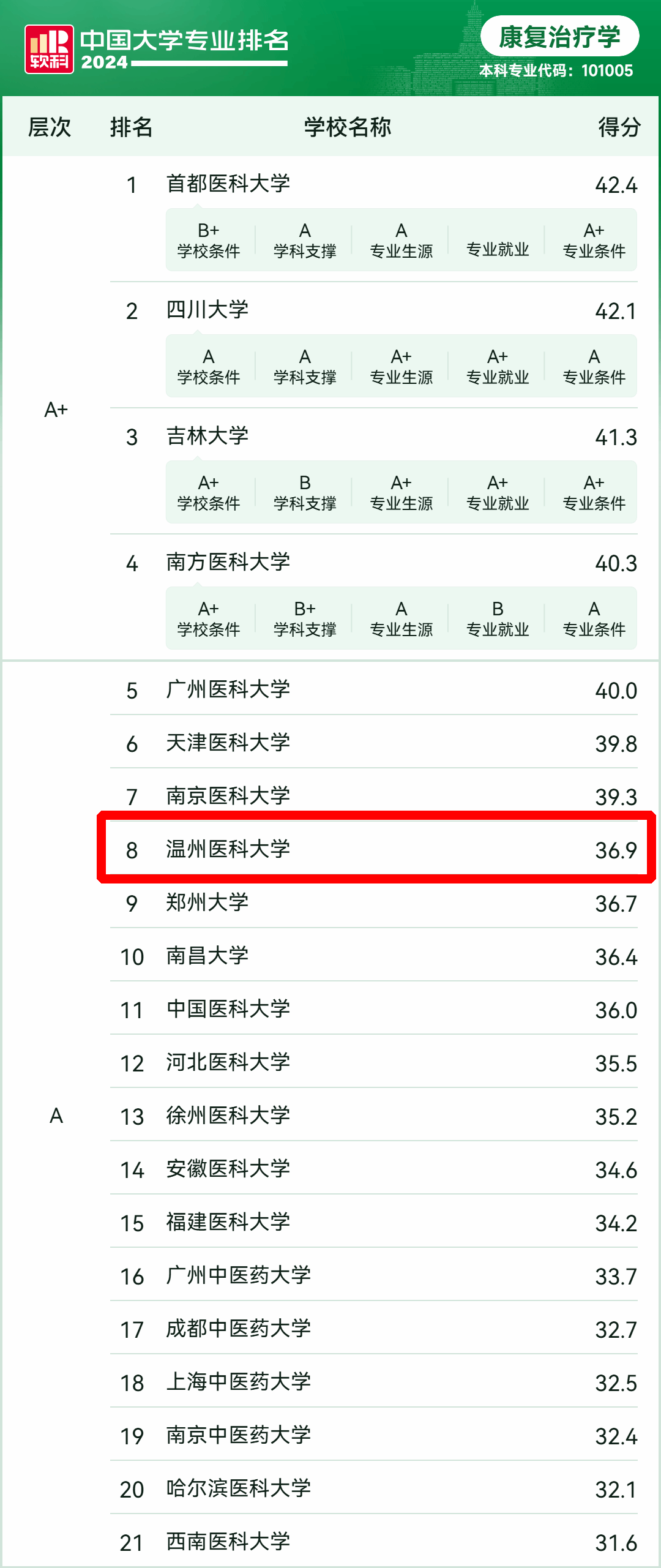 • 喜报丨2024年软科中国大学专业排名:XC体育康复治疗学专业居全国第八位!