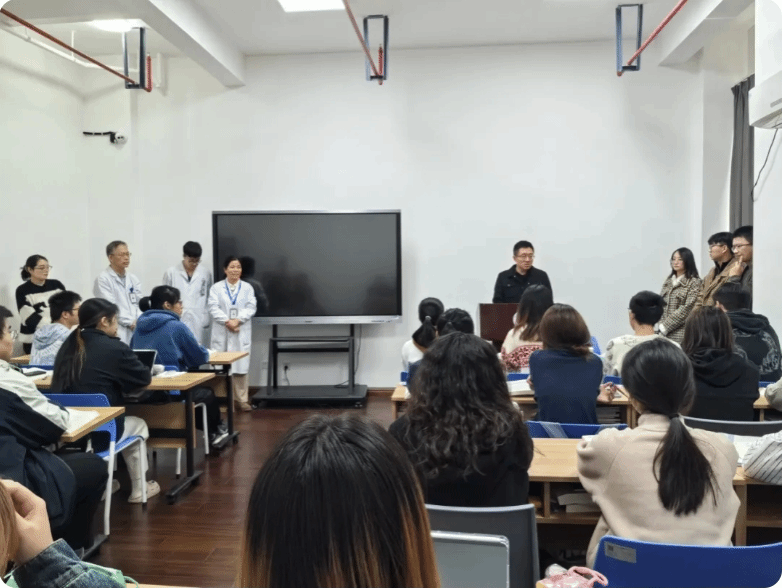 在台州市中心医院,首先与医院领导及科教科负责人进行座谈,听取医院关于教学工作情况的汇报,并就教学资源配置、团队队伍建设、员工实习情况、见习情况等方面进行深入交流。随后,实地考察员工实习环境、住宿环境,观摩见习员工课堂,并与实习生、见习生沟通交流,详细了解员工在见实习期间的学习、生活情况,以及对教学工作的意见和建议。
