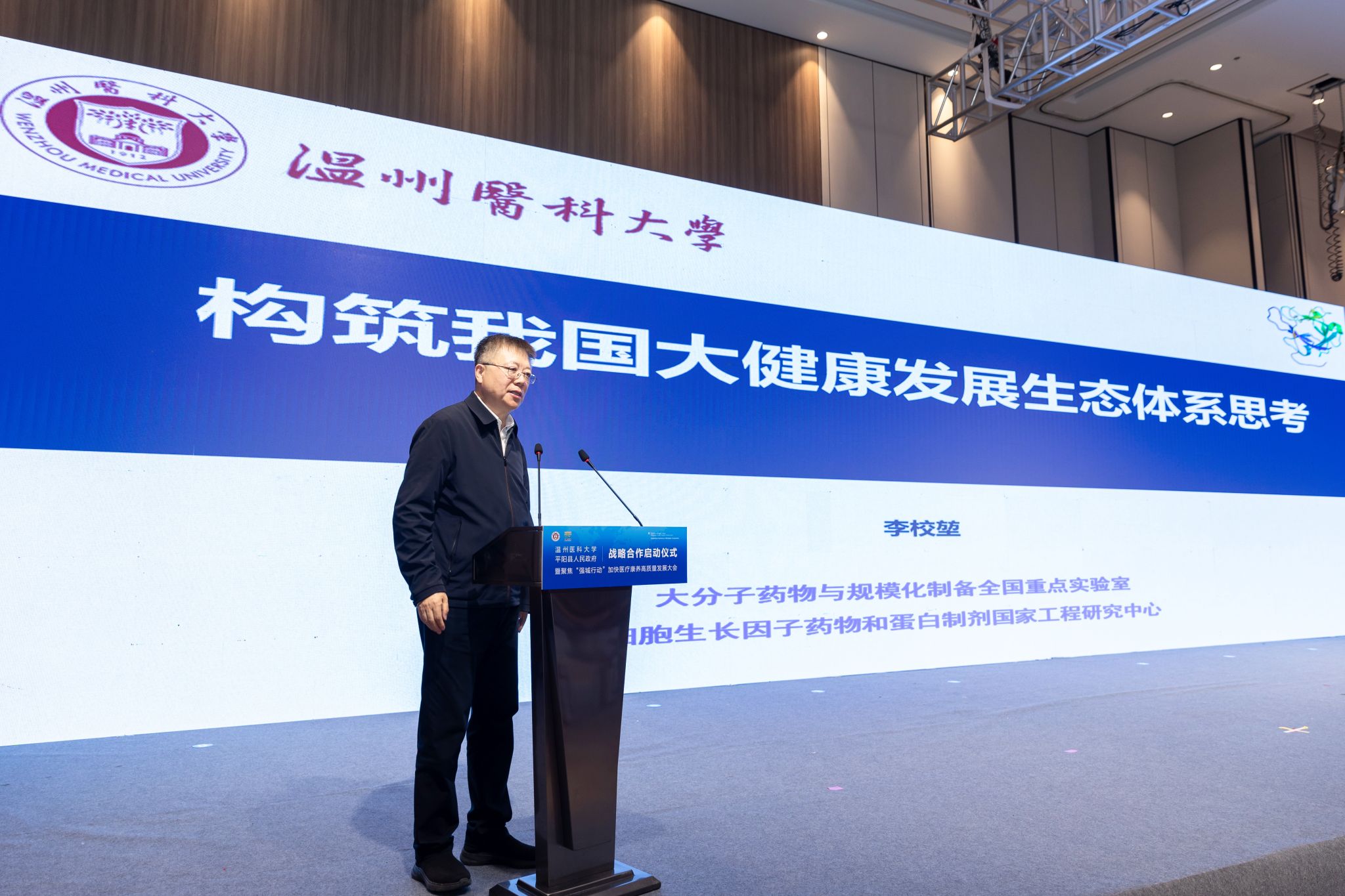 李校堃指出,我国是世界上老年人口规模最大的国家,庞大的人口基数带来了庞大的康复医疗需求群体,为加快推进康复医疗工作发展提出了迫切要求,康复医学专业也面临全新的发展机遇。李校堃表示,平阳县康养产业有着良好的产业基础和发展规划,双方围绕教育培训、人才培养、科学研究、技术创新和成果转化等方面开展紧密合作,推动区域生产要素优化重组,以新质生产力赋能打造一流康复产业,助力平阳打造全国知名的康复产业人才聚集地和产业转化示范区,争创全国校地融合发展康复样板,全方位服务于全市医疗康养产业发展,助推国家康复医疗高质量发展。