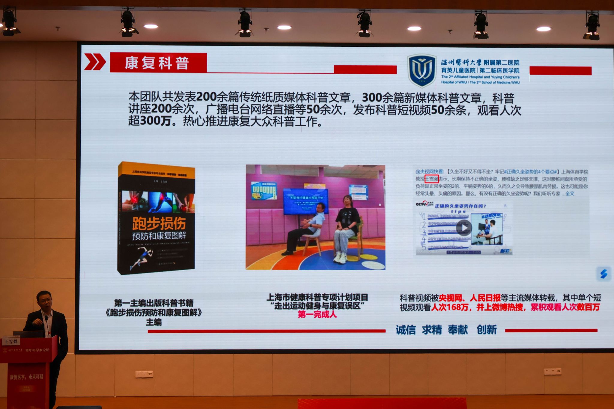 随后,王雪强副经理介绍了团队在康复医学领域所取得的科研项目、成果获奖、社会服务等方面的成就,提出要建立核心稳定训练治疗腰痛的关键技术,规范国内关节松动治疗技术在康复中的应用。他强调,康复医学具有提升患者的生活质量、促进社会参与、减轻医疗负担的重要意义。近年来,康复技术取得了显著的发展,尤其在人工智能应用、虚拟现实技术创新和生物反馈技术发展三方面展现出广阔的未来前景,生动描绘了一幅康复医学发展的宏伟蓝图。