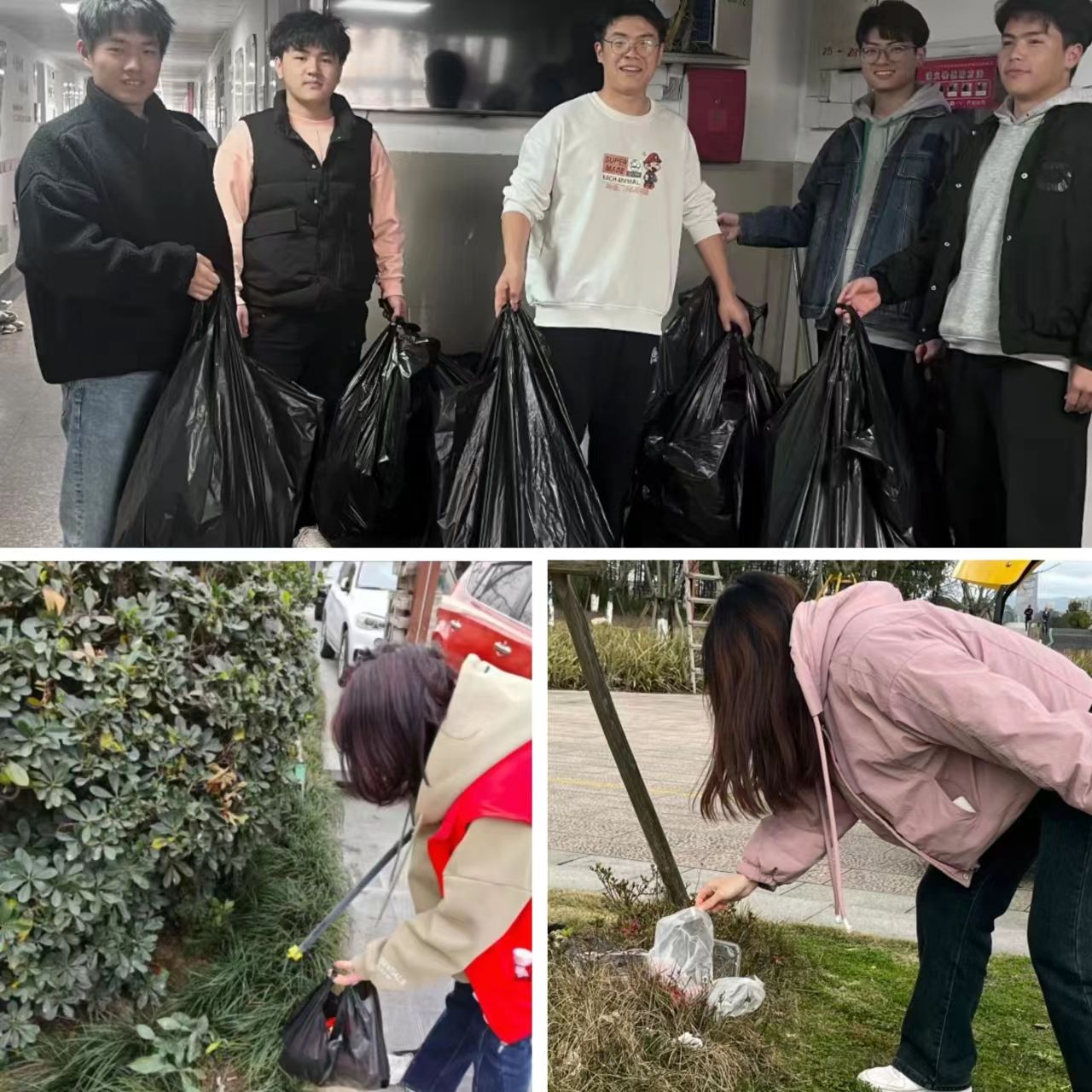 我们在宿舍楼帮宿管阿姨整理垃圾。通过整理垃圾,我们意识到了垃圾分类的重要性,了解到不同种类的垃圾应该分别投放,以便进行有效的回收和处理。