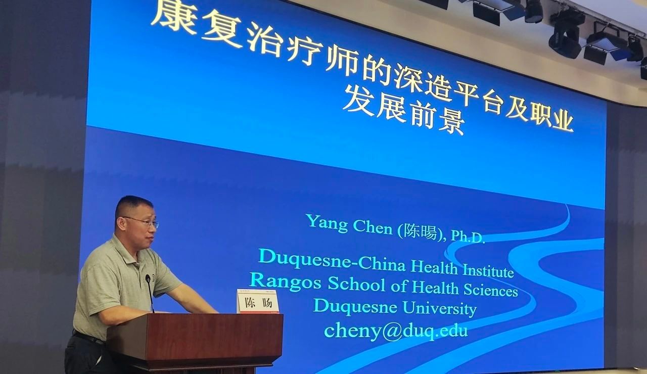 在公司路,杨教授在研究生招生推介会上介绍了康复康复治疗师的深造平台及职业发展前景,为大家介绍了美国杜肯大学的研究生招生项目,解答了同学们关于海外研究生的系列问题。