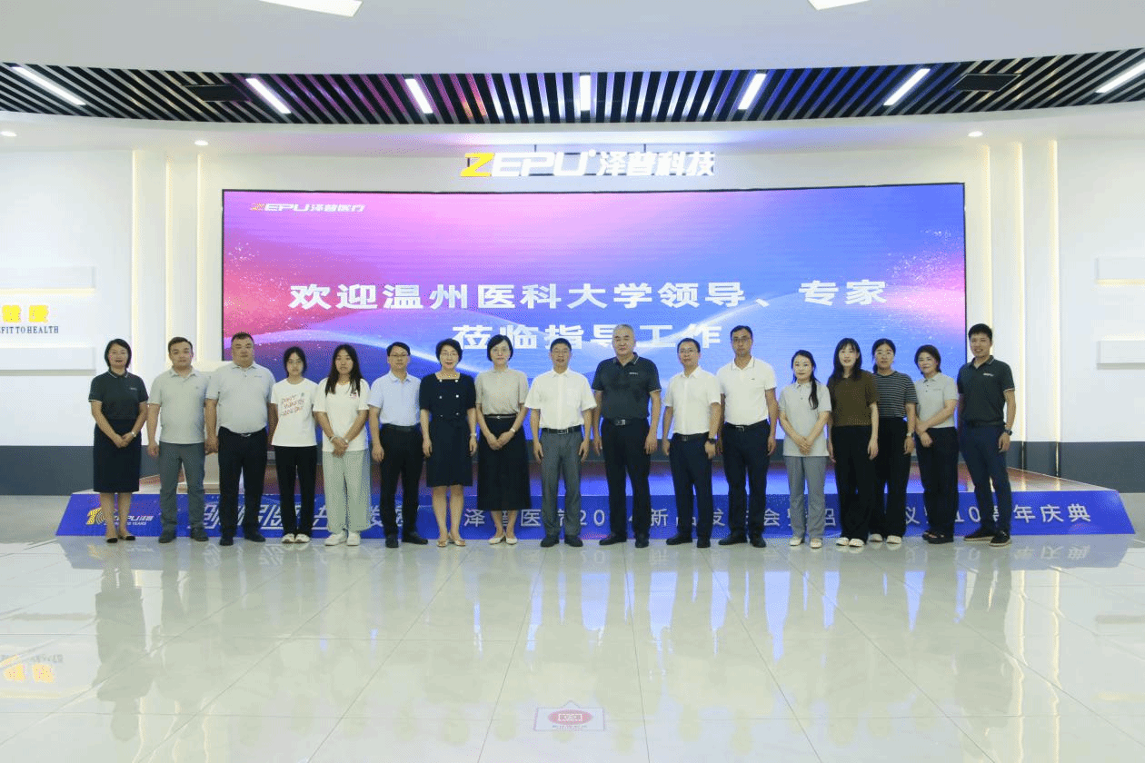 在山东泽普医疗科技有限公司,章成斌一行首先参观了泽普医疗大健康体验中心与生产加工车间,了解了泽普医疗发展历程、战略规划、以及泽普医疗校企合作实践经验。