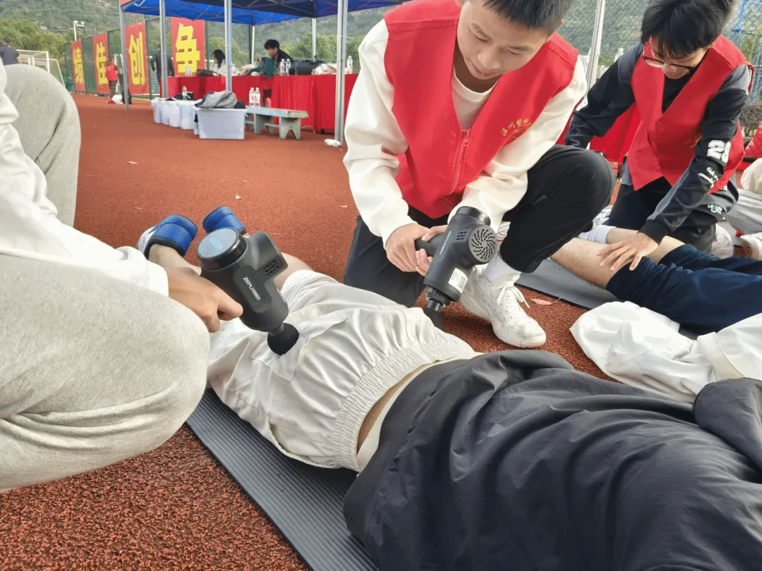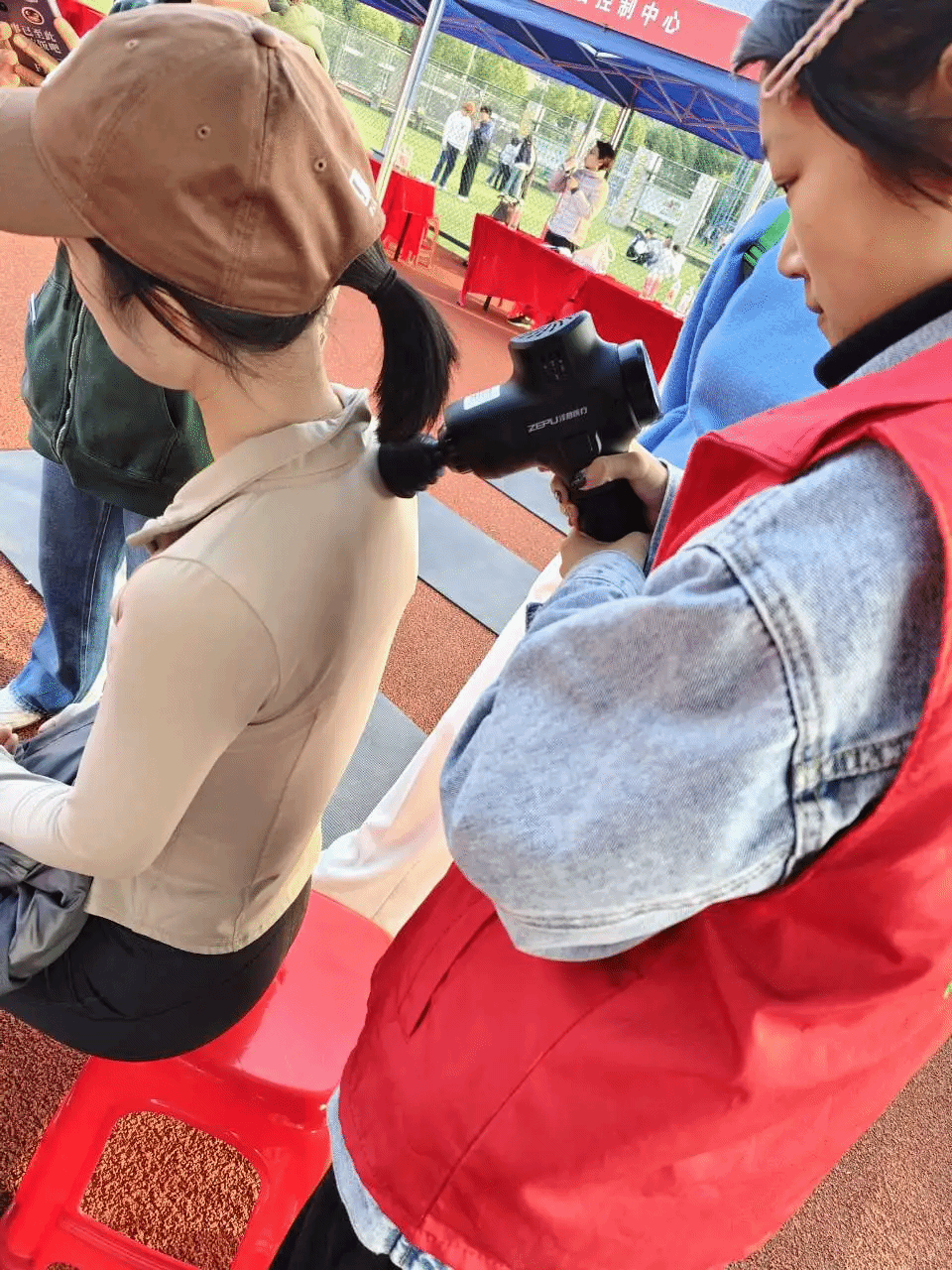 运动会期间,运动员们在激烈的竞技中难免会出现肌肉紧张和轻微损伤。“康复之光”志愿者队凭借其专业知识和技能,为运动员们提供了及时有效的帮助。志愿者们不仅在赛前为运动员进行肌肉放松和热身指导,以减少运动损伤的风险,还在赛后为运动员提供冷敷、拉伸和按摩等服务,帮助他们缓解肌肉酸痛和疲劳。