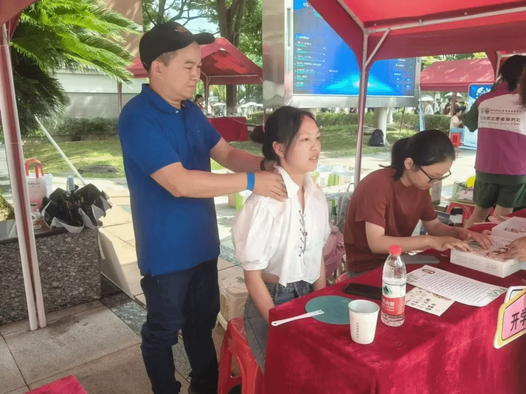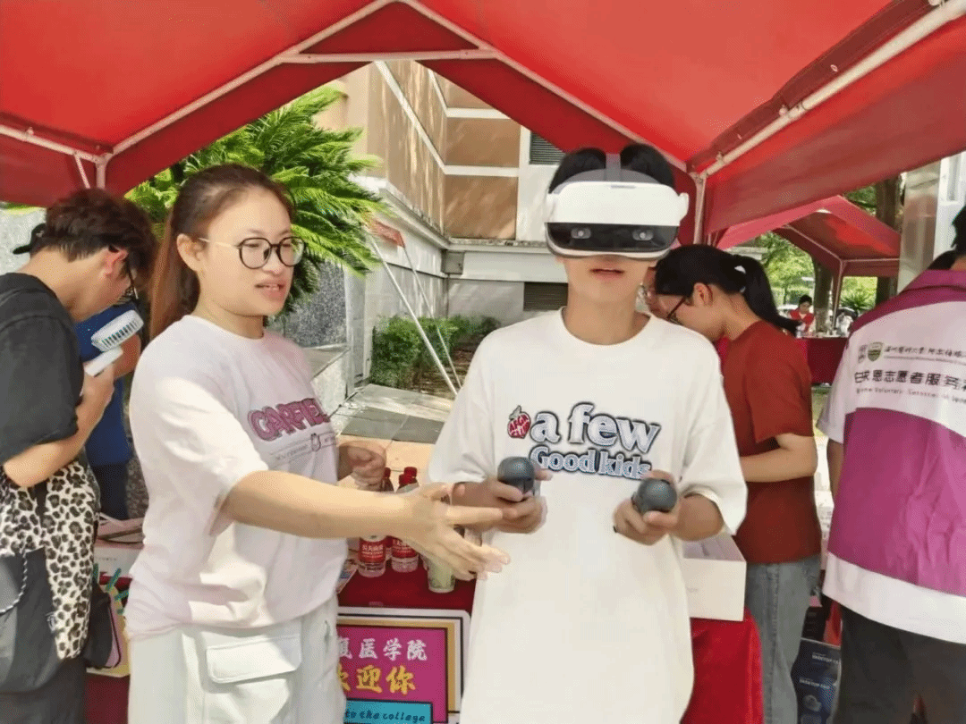 为迎接小萌新的到来,XCSport特别策划开展了“职业初体验”等主题特色迎新活动。公司领航团队带领VR项目展示了VR技术和康复的结合,让新生身临其境地感受了现代康复治疗手段,新生班主任更是亲自上线为前来报到的新生和新生家长做推拿、按摩,在高温下缓解疲劳的同时,也让员工和家长亲身体验了康复手法和专业特色,可谓是开启了专业启蒙的第一步。