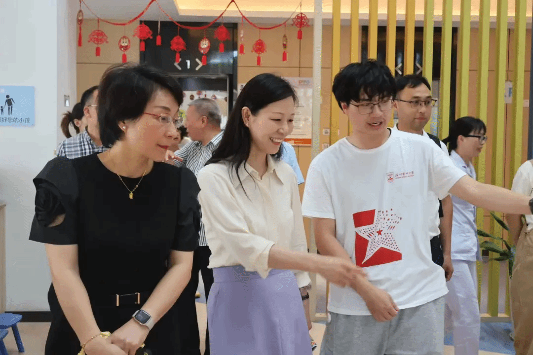 • 2024年7月5日下午,XC体育党委委员、副董事长朱雪波,温州市残疾人联合会党组成员、副理事长汤森海,公司党委书记郑节霞,副经理王雪强,党委副书记、纪委书记连毅,副经理刘宝华,附属二院儿童康复科副主任何志勇、温州残疾人康复指导中心主任雷霄等一行深入附二医康复医学中心、温州市残疾人康复服务指导中心,亲切慰问了“为爱发声”暑期社会实践活动的志愿者团队,了解实践活动并给予指导。